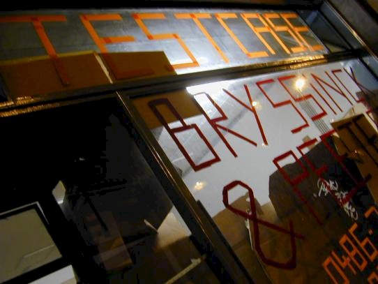 Jazeker, in het psychopathologische universum der neuroten hoort uiteraard ook de mythomaan thuis, die de fictie als monomanie ervaart en de fictie monomaan bedrijft: wat het signatuur-coloriet en monochrome doek voor monochromanen als Robert Mangold, Brice Marden, Robert Ryman, Jan Schoonhoven (wit), Ad Reinhardt (zwart), Gerhard Richter (grijs) en McCracken, Newman, Rothko of Wéry (andere kleuren van de regenboog) betekent, dat is de – haast per definitie biografische – fictie voor de mythomaan. IN HUN PROGRAMMATISCHE OBSESSIE – dat hier van een obsessie gewag gemaakt kan worden zegt op zich al genoeg – VOOR DE EST/ETIEK VAN DE CLANDESTINITEIT OPENBAREN BRYSSINCK & PEETERS ZICH ALS MYTHOMANEN PUR SANG. (Dat zij de esthetiek van het ondergrondse daarenboven met een ethiek van esoterisme, geheelont- als geheimhouding en hermetiek verwarren pleit bovendien voor hun schrale begrip van Wittgensteins beroemde maxime “E. und E. sind eins”)