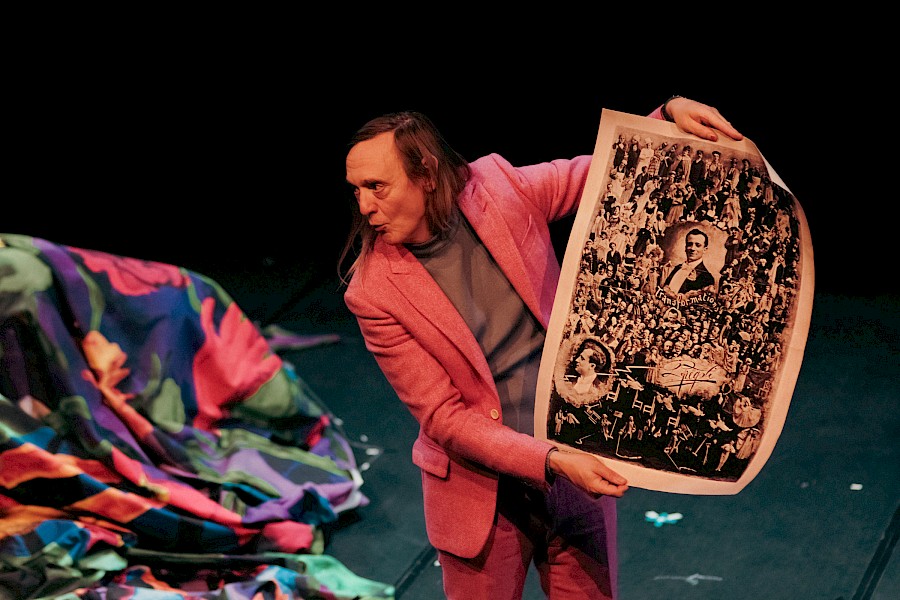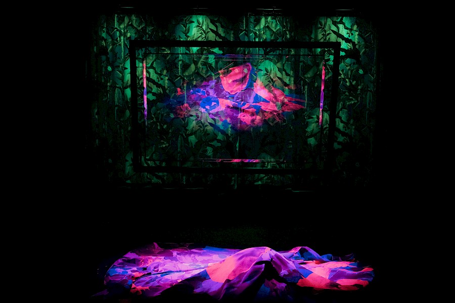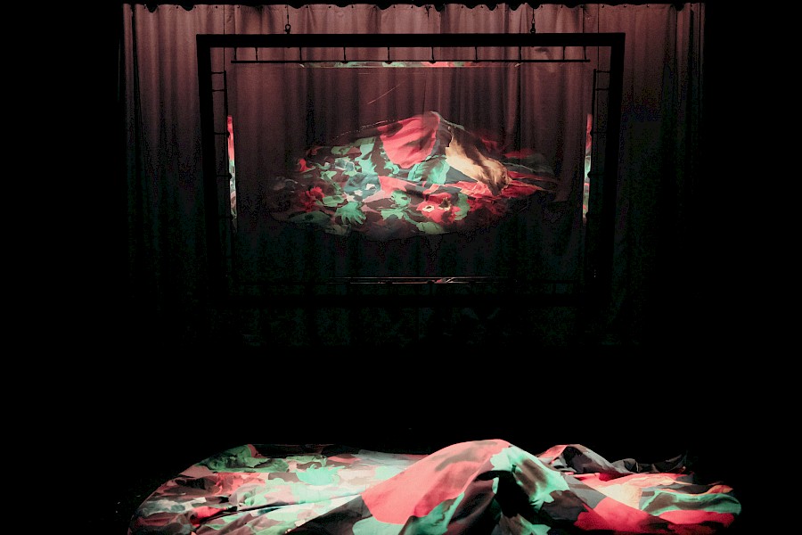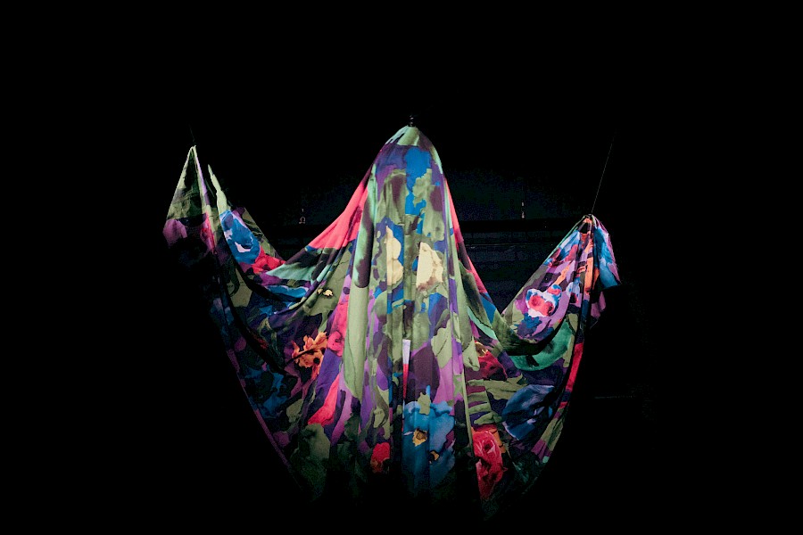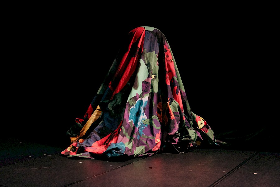 Un amoncellement informe de tissus prend vie peu à peu, respirant, muant, se transformant. Des formes et des créatures s’évaporent dès qu’elles apparaissent. Les corps semblent se coudre ensemble puis se défaire à nouveau. Mirage, hallucination, ou simplement notre esprit qui tente de donner sens à l’abstraction qui se déploie sous nos yeux ? Conçu comme une sorte de test de Rorschach performatif, le public est invité à observer la manière dont le cerveau interprète ce qu’il percoit. Ce processus trouve son origine dans un phénomène connu sous le nom de « paréidolie » : la tendance à projeter des motifs familiers sur des stimuli aléatoires, comme reconnaître des visages ou des animaux dans les nuages qui passent. Le phénomène illustre l’impulsion innée de notre cerveau à donner sens à notre environnement, même lorsqu’il est confronté à des informations incomplètes ou ambiguës.